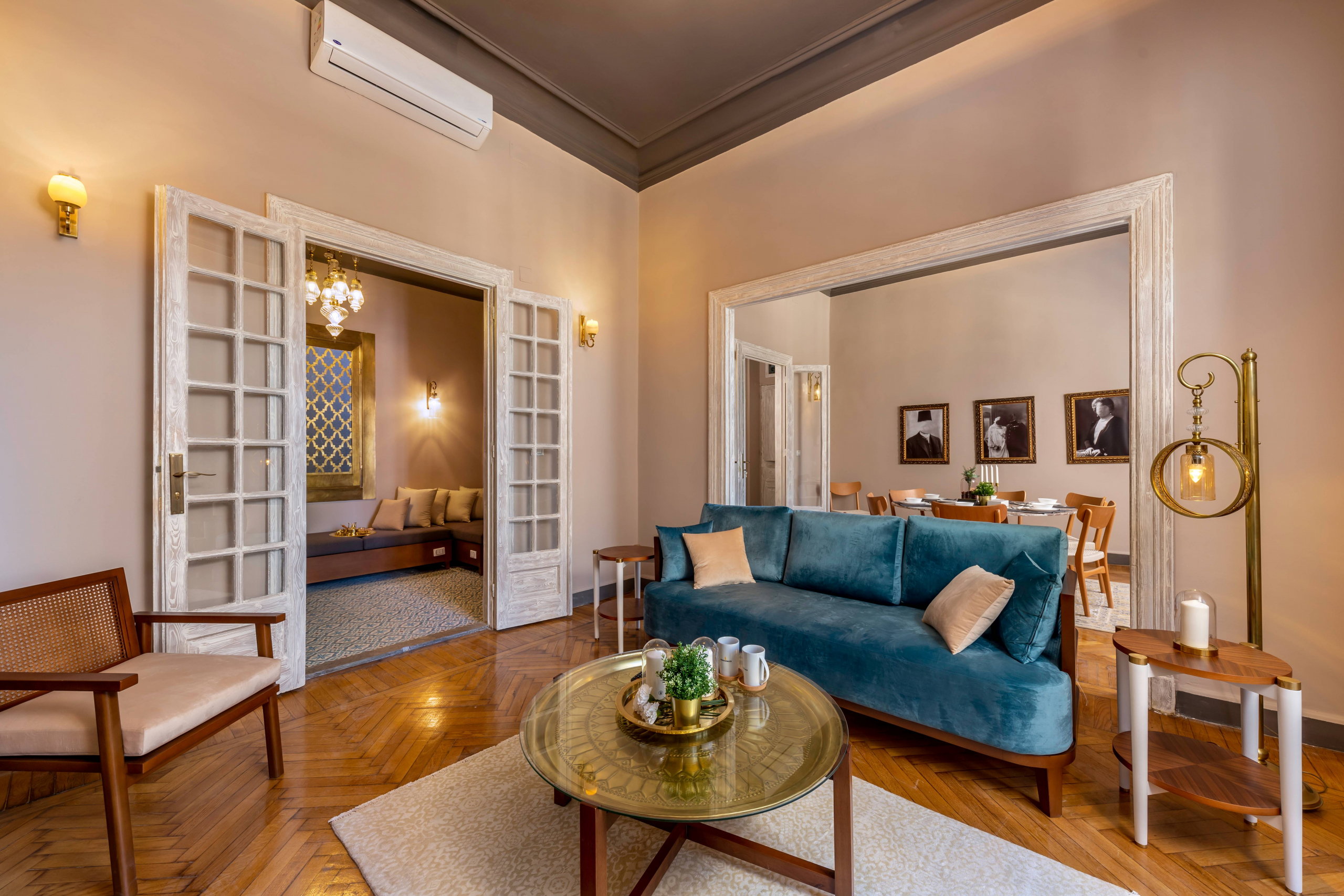 The apartment commemorates an era, cultures, interior and architectural styles infused in Downtown Cairo’s urban facade. This is reflected in the architecture and interiors including, furniture and accessories. The overall design of the apartment presents it as a time capsule providing the user with a wholehearted experience of Downtown Cairo.